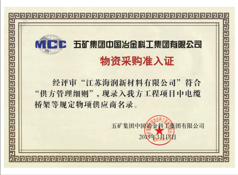 2019年10月江苏海润通过了由五矿集团公司部门组成的电气合格供应商资格认定。近月以来,五矿集团公司先后组织有关人员对我司进行了实地调研和考察。我们的产品经 过专家组成的评审正是以良好的产品质量、优质的服务赢得了五矿集团的信赖。海润定会更加珍惜这个机会,为客户提供更优质的产品与服务,与客户共同进步,共谋发展。